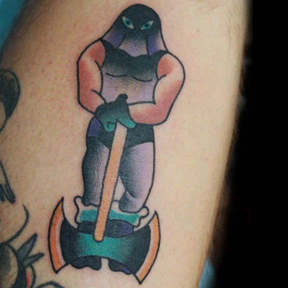 One point pieces made with precision. Images applied in a traditional manner. Clean lines, solid fields of color, and neat shading.